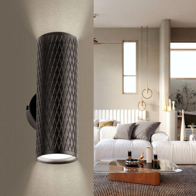 Светильник декоративный настенный WL46 BK предназначен для освещения гостиных, коридоров, спальных комнат. Создает интересные световые композиции, подчеркивает структуру материалов, формирует неожиданные эстетические эффекты. Цоколь для источника света GU10, напряжение питания ~230В 50/60Гц, материал металл, пластик, цвет светильника черный, размер D55х85x170мм, максимальная мощность лампы 12 Вт, степень защиты IP20
