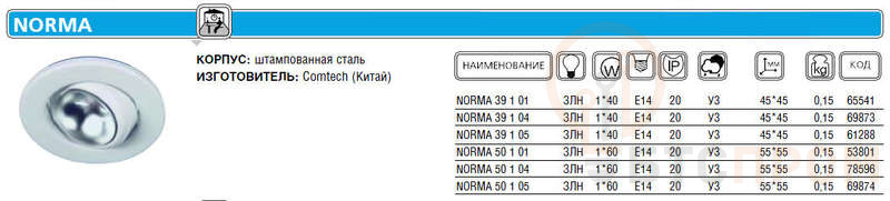 –Светильник NORMA 39 1 05 Комтех CH918027