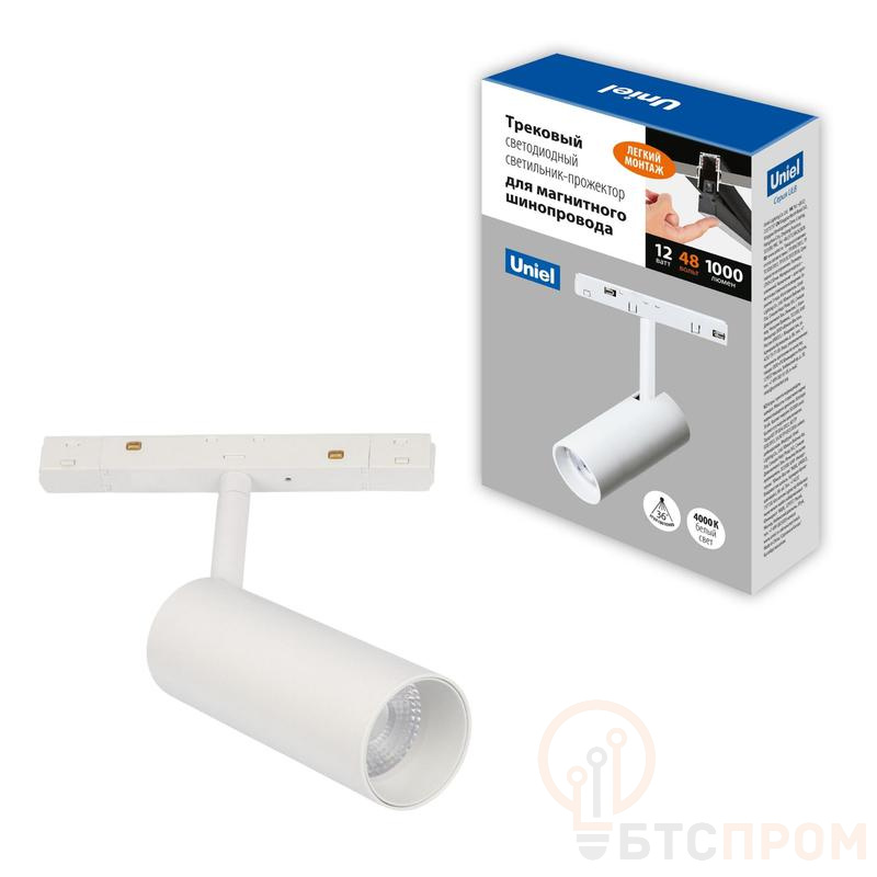 Светильник-прожектор светодиодный трековый ULB-M60-12W/4000K/35 WHITE 4000К 2000лм для магнитн. шинопровода бел. Uniel UL-00008739