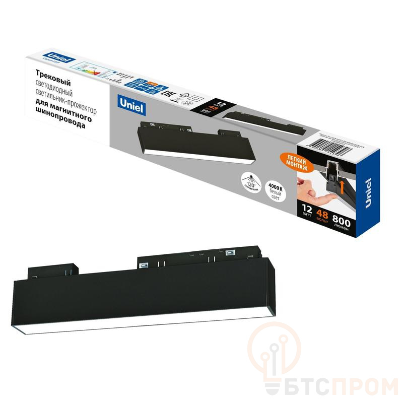 Светильник-прожектор светодиодный трековый ULB-M70-12W/4000K/35 BLACK 4000К 900лм линейный для магнитн. шинопровода черн. Uniel UL-00008742