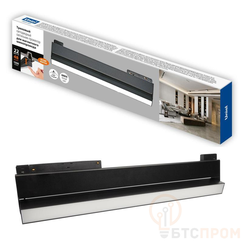 Светильник-прожектор светодиодный трековый ULB-M80-22W/4000K/35 BLACK 4000К 2000лм линейный для магнитн. шинопровода черн. Uniel UL-00008748