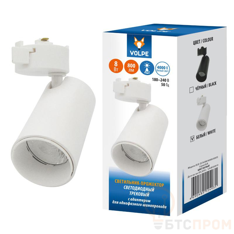 Светильник-прожектор светодиодный трековый ULB-Q276 8W/4000K WHITE 8Вт 4000К 800лм бел. Volpe UL-00005933