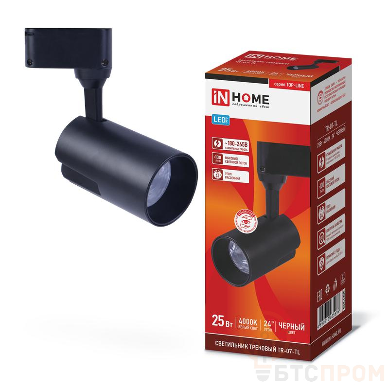 Светильник светодиодный трековый TOP-LINE TR-07-TL 25Вт 6500К IP40 2500лм 24град. черн. IN HOME 4690612040165