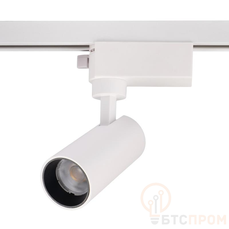 Ключевой особенностью является узкий угол рассеивания света 24°, что позволяет создавать акцентированную подсветку товаров, экспонатов или отдельных зон, привлекая к ним внимание. Корпус светильника выполнен в классическом белом цвете (WH) и имеет степень защиты IP40, что делает его идеальным для использования внутри чистых и сухих помещений. Устройство предназначено для монтажа на однофазные трековые системы (1ф), что обеспечивает простоту установки и возможность легкого перемещения вдоль шины для изменения светового сценария.