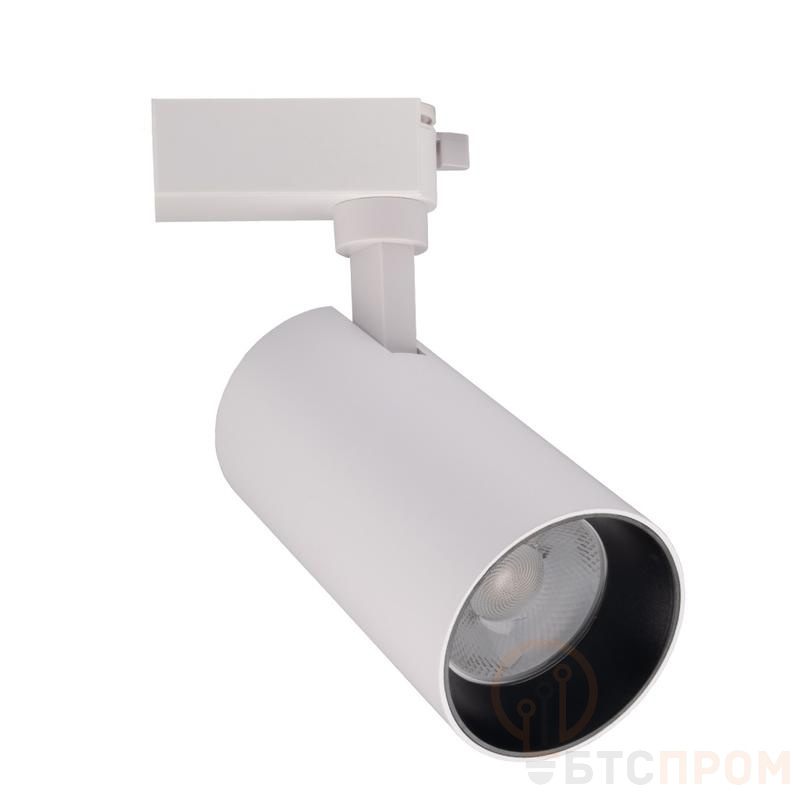 Ключевой особенностью является узкий угол рассеивания света всего 24 градуса, что позволяет создавать яркие световые акценты, подсвечивая конкретные товары или зоны. Корпус светильника выполнен в классическом белом цвете (WH) и имеет степень защиты IP40, что делает его пригодным для использования в обычных внутренних помещениях. Оборудование устанавливается на трековую шину однофазного типа (1ф), что обеспечивает гибкость в позиционировании и легкость монтажа.
