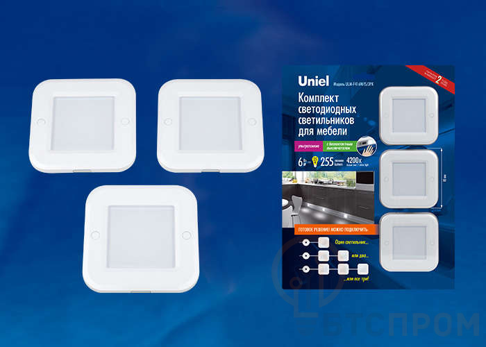 Светильник светодиодный ULM-F41-6Вт/4200К/DIM SENSOR IP20 WHITE диммер. 85х85х6.5мм бел. Uniel UL-00002888
