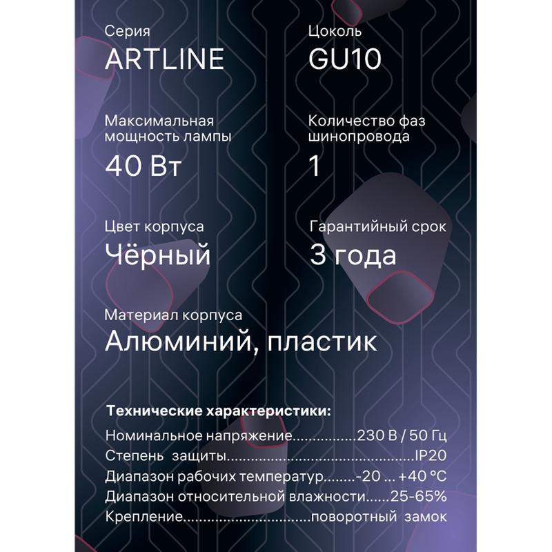 Светильник трековый ARTLINE поворотный 55х55х100мм GU10 230В алюм./пластик. 4кв.м черн. Ritter 59880 4