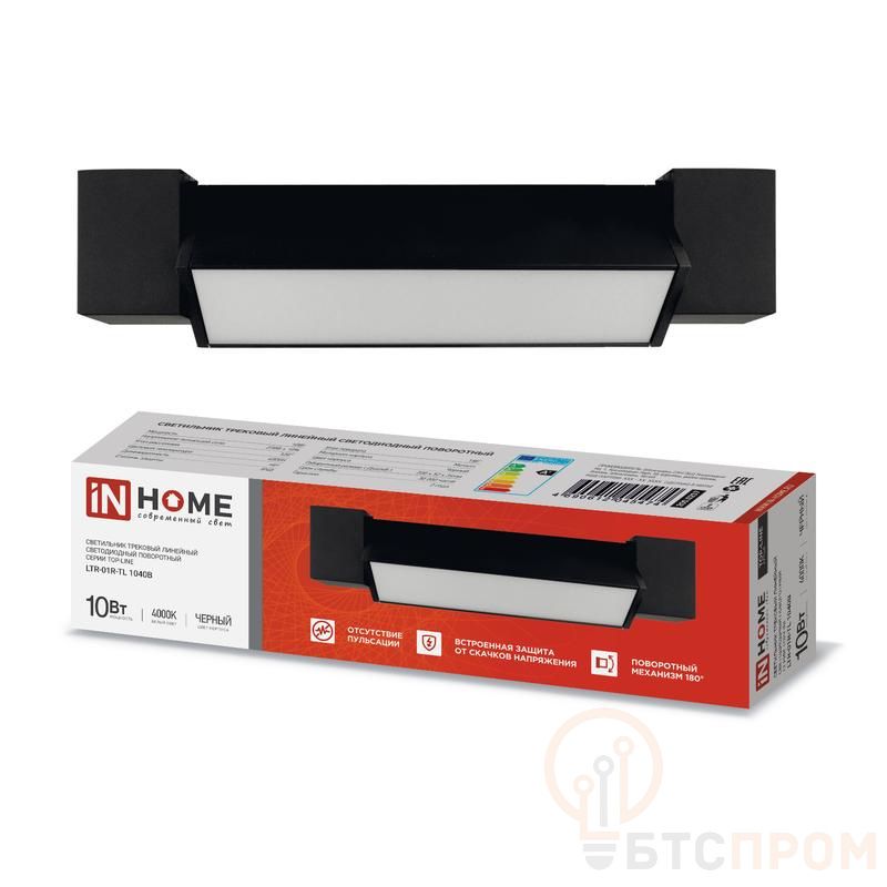 Светильник трековый линейный светодиодный поворотный LTR-01R-TL 10Вт 4000К 1000лм 210мм IP40 120град. TOP-LINE черн. IN HOME 4690612045474