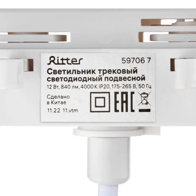 Светильник трековый подвес светодиодный ARTLINE 40х40х300мм 12Вт 840Лм 4000К 230В алюм. 5.5кв.м бел. Ritter 59706 7