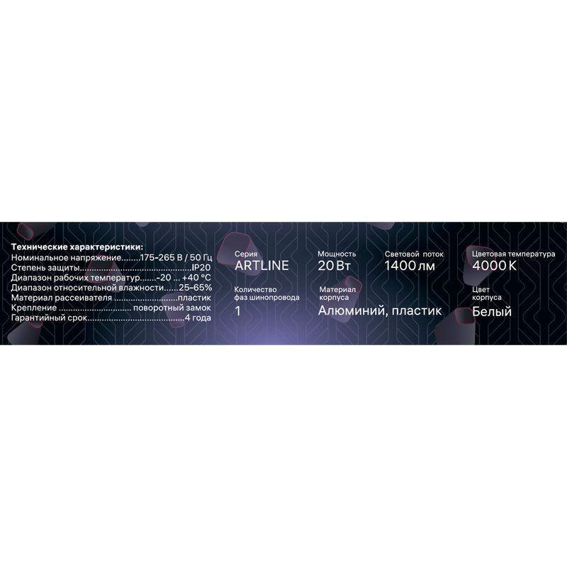 Светильник трековый светодиодный ARTLINE 343х35х40 20Вт 1400Лм 4000К 230В алюм. 9кв.м бел. Ritter 59717 3