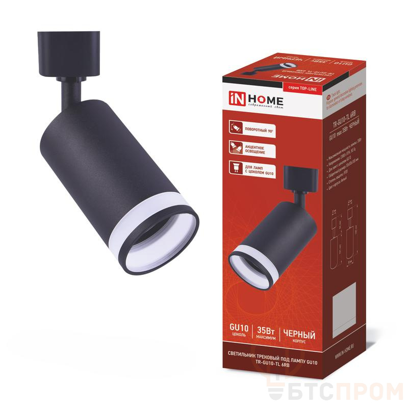 Светильник трековый TR-GU10-TL 6RB GU10 230В черн. IN HOME 4690612037677 фото в каталоге от BTSprom.by