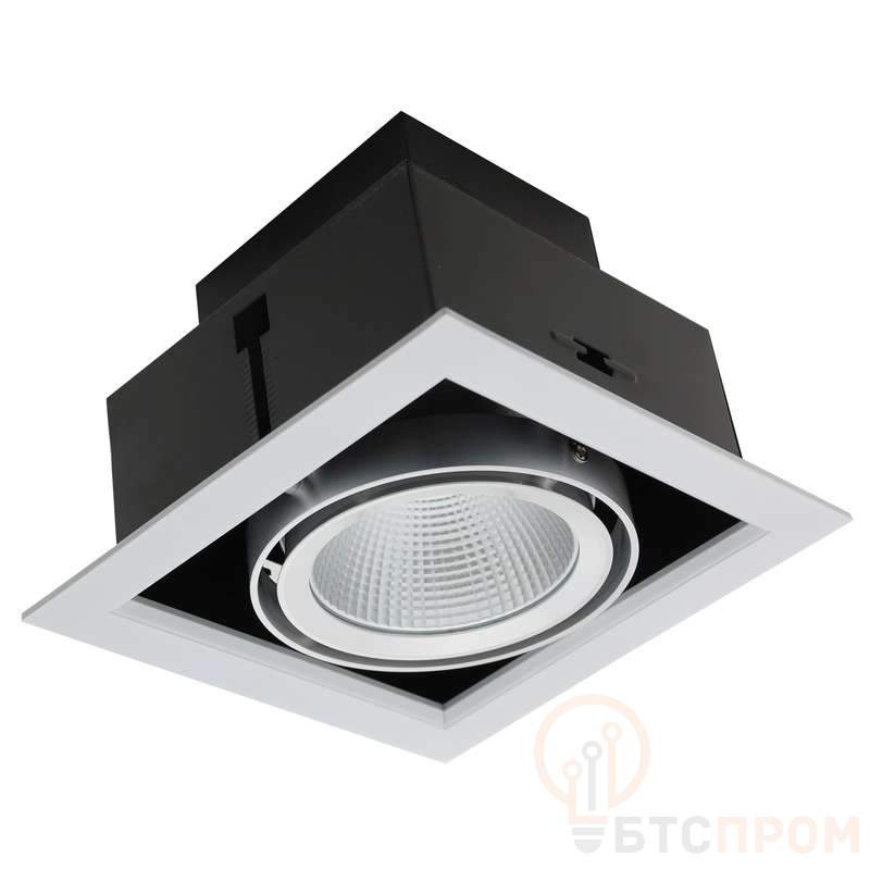 УСТАНОВКА Встраивается в потолки типа 'Армстронг' или в подшивные потолки из гипсокартона. КОНСТРУКЦИЯ Металлический корпус, окрашенный порошковой краской (стандартное исполнение - цвет 'серый металлик'/'черный'). Карданная система регулировки оптического модуля.Блок питания встроен в корпус светильника. ОПТИЧЕСКАЯ ЧАСТЬ Рефлектор, прозрачный рассеиватель из ударопрочного оптического поликарбоната.