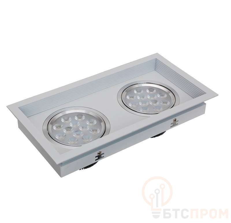 УСТАНОВКА Встраивается в потолки типа 'Армстронг' или подшивные потолки из гипсокартона. КОНСТРУКЦИЯ Металлический корпус, окрашенный порошковой краской (стандартное исполнение – цвет 'белый' / 'хром'). Оптическая часть поворачивается в пределах 15 по горизонтальной оси. Блок питания встроен в корпус светильника. ОПТИЧЕСКАЯ ЧАСТЬ Прозрачнае линзы из оптического поликарбоната, угол рассеивания 60