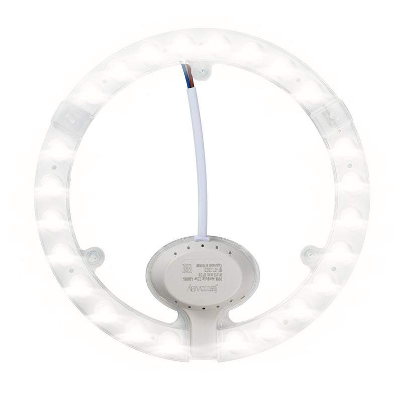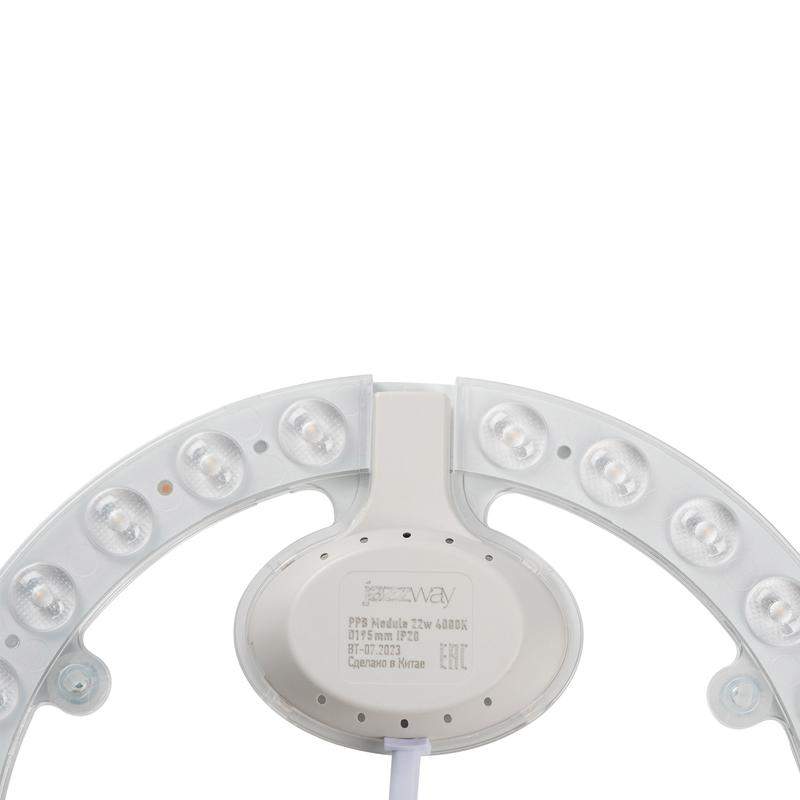 Модуль светодиодный с драйвером PPB Module 22Вт 4000К D195мм IP20 крепление магнит JazzWay 5048218 — это усовершенствованная версия светодиодного модуля с увеличенным диаметром (195 мм) и мощностью (22 Вт). Большая площадь свечения позволяет создавать более равномерное и мягкое освещение без резких теней, что особенно важно для помещений, где люди находятся продолжительное время: офисы open-space, учебные классы, рабочие кабинеты. Нейтральный белый свет 4000К способствует созданию продуктивной и рабочей атмосферы, уменьшая нагрузку на зрение при работе с документами или за компьютером. Магнитное крепление остается ключевым преимуществом, обеспечивающим невероятную простоту монтажа — установка светильника занимает считанные секунды. Это также удобно для последующей замены или обслуживания модуля без использования специальных инструментов. Модуль полностью готов к работе — встроенный драйвер преобразует сетевое напряжение и обеспечивает корректный режим работы светодиодов, что избавляет от необходимости подбирать и устанавливать внешний блок питания. Степень защиты IP20 ограничивает применение сухими помещениями. Данная модель от JazzWay — это отличный выбор для тех, кто ценит простоту, надежность и современный эстетичный вид светильников. Круглая форма модуля органично вписывается в большинство современных интерьерных решений.