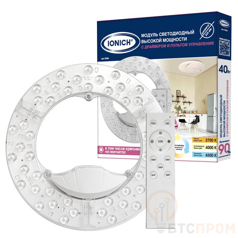 Модуль светодиодный высокой мощности с пультом ДУ для декоративных светильников 40Вт 230В 3000-6500К d245мм диммир. IP20 IONICH 2086