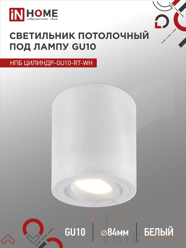 Светильник НПБ ЦИЛИНДР-GU10-RT-WH 230В 70х84мм потолочн. поворотн. под лампу GU10 алюм. бел. IN HOME 4690612053639