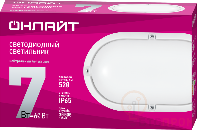 Светильник светодиодный 71 687 OBL-O1-7-4K-WH-IP65-LED 7Вт 4000К IP65 520лм ЖКХ овал бел. (аналог НПП) ОНЛАЙТ 71687