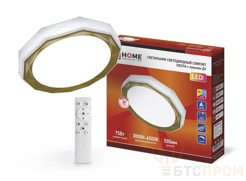 Светильник светодиодный COMFORT SIESTA 75Вт 3000-6500К 6000лм 230В 500х100мм с пультом ДУ IN HOME 4690612035161