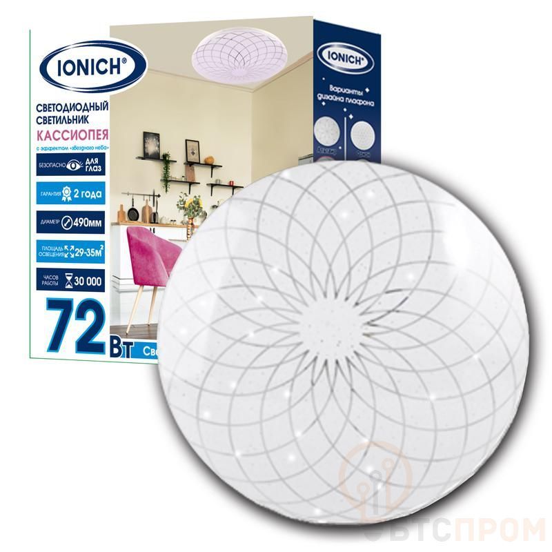 Светильник светодиодный декоративный 2217 "Кассиопея" с эффектом "Звездное небо" 72Вт 5000лм 230В 6500К 450мм IP20 IONICH 1748