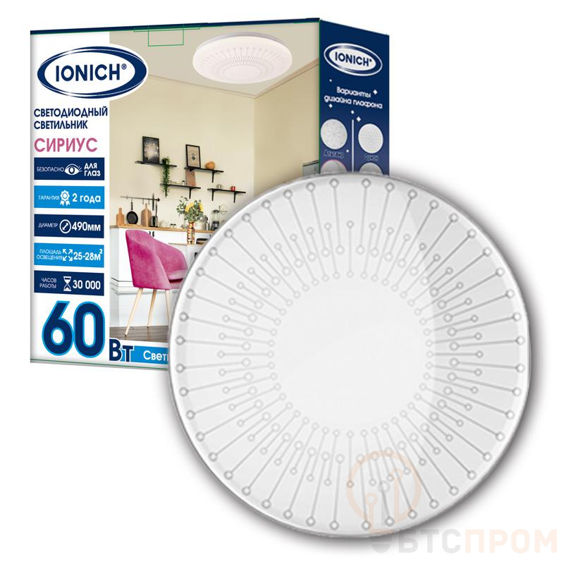 Светильник светодиодный декоративный "Сириус" 2160 60Вт 4200лм 230В 6500К 450мм IP20 IONICH 1743 фото в каталоге от BTSprom.by