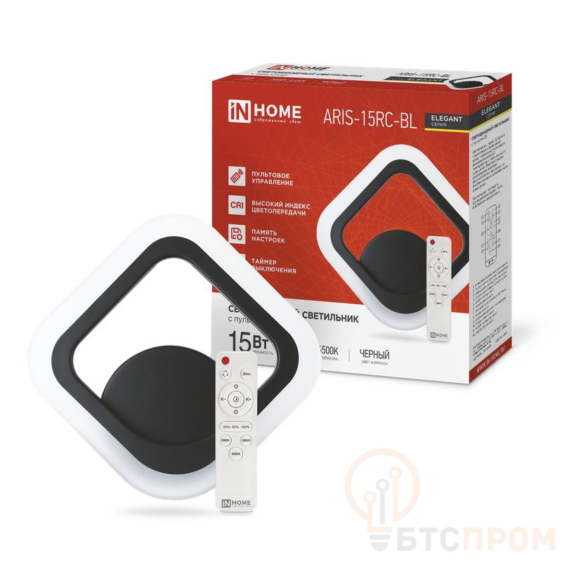 Светильник светодиодный ELEGANT ARIS-15RC-BL 15Вт 3000-6500К 1200лм 230В пульт ДУ черн. IN HOME 4690612054162