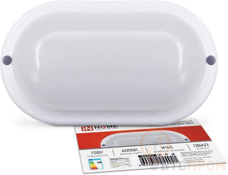 Светильник светодиодный герметичный СПП 1540-ОВАЛ 15Вт 4000К 1350лм IP65 160х88мм IN HOME 4690612044941
