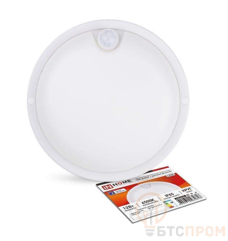 Светильник светодиодный герметичный СПП-Д-КРУГ 12Вт 230В 6500К 960Лм с датч. движ. IP65 IN HOME 4690612032818