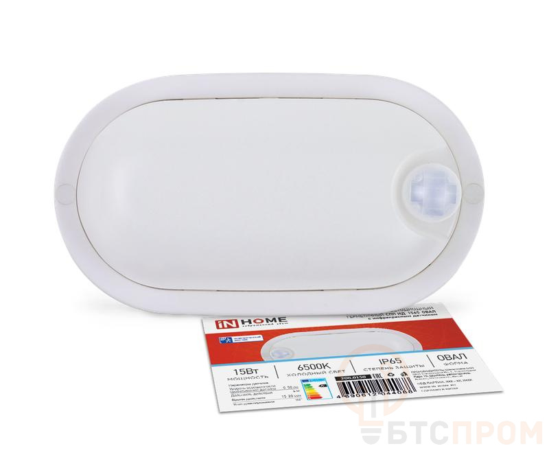 Светильник светодиодный герметичный СПП ИД-1565-ОВАЛ 15Вт 6500К 1350лм IP65 160х88мм с инфракрасным датчиком IN HOME 4690612044088