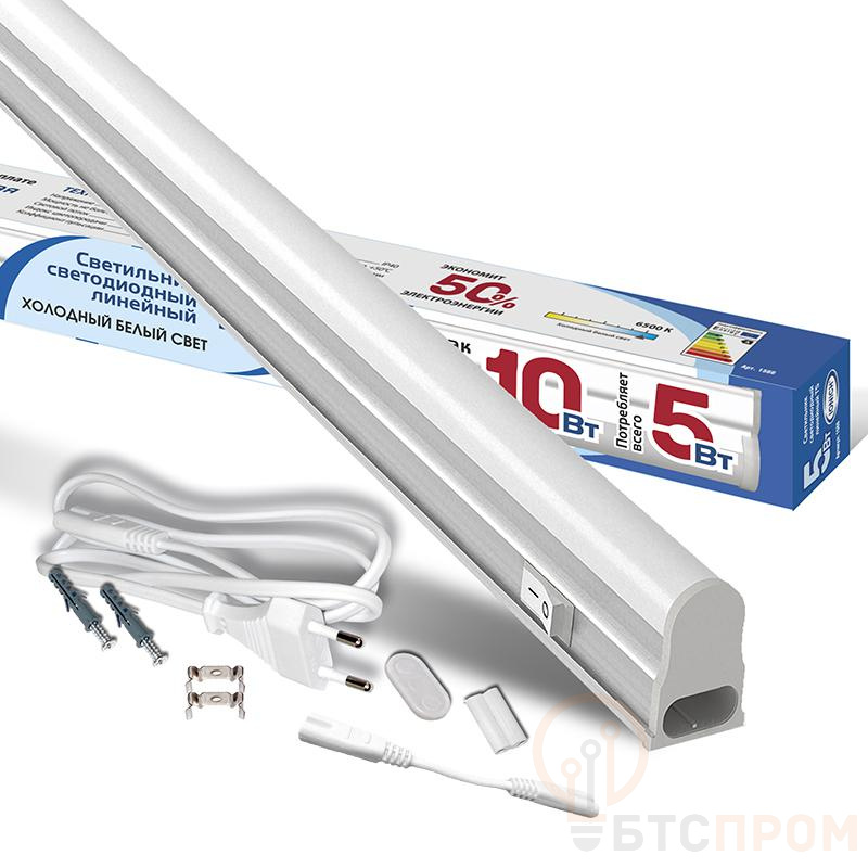 Светильник светодиодный ILED-COCB-СПБТ5-300-5-450-230-6.5-IP40 5Вт 6500К IP40 450лм 230В 300мм СПБ Т5 линейный IONICH 1566