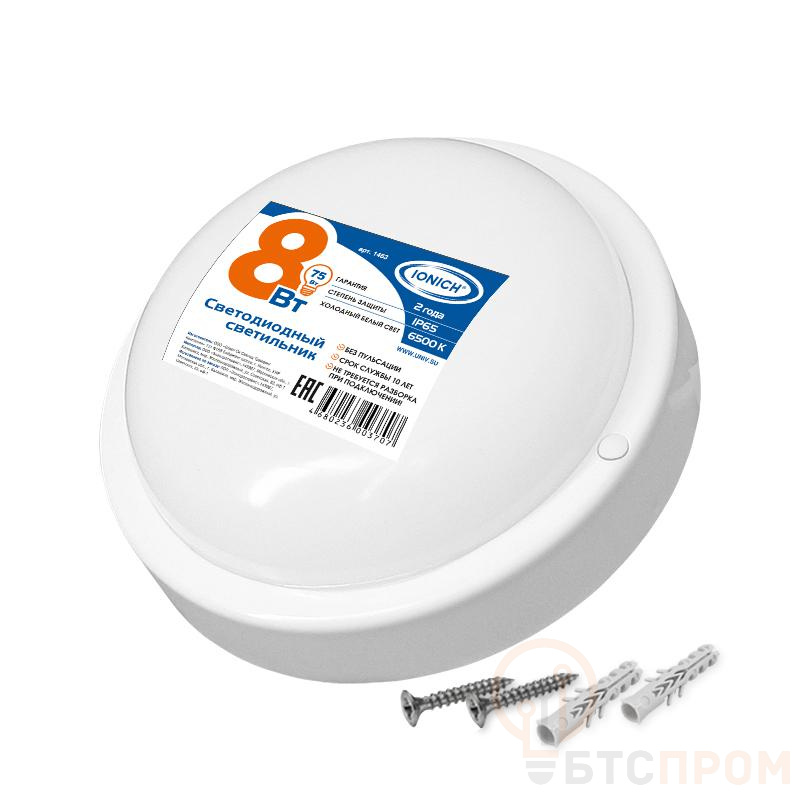 Ключевые характеристики: мощность 6.5 Вт, световой поток 650 лм, что обеспечивает комфортную и равномерную освещенность. Источником света служат современные светодиоды SMD 2835, гарантирующие долгий срок службы и стабильную работу. Напряжение питания 220 В. Степень защиты IP65 позволяет использовать светильник на улице, в подъездах, подвалах, чердаках, а также на производственных площадках, так как корпус надежно защищен от пыли и мощных струй воды.