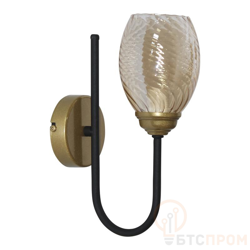 Настенный светильник Элетех 1005405432 "Юна" 511 для акцентного освещения. Одиночный плафон 8264 с патроном E14. Черно-золотая отделка. Накладной монтаж на стену. Для зеркал и картин.
