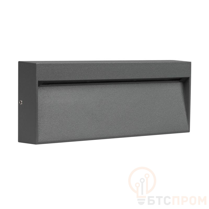 Светодиодный накладной прямоугольный светильник для стен, лестниц, 8Вт. Цвет ТЕПЛЫЙ БЕЛЫЙ 3000K, св.поток 300лм, CRI(Ra)>80, угол 65°, асимметричный свет. Размер 200x80x32мм. Влагозащищенный корпус IP65, алюминий серого цвета. Питание AC230V, 8Вт, встроенный драйвер.