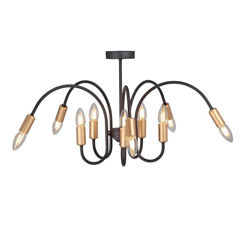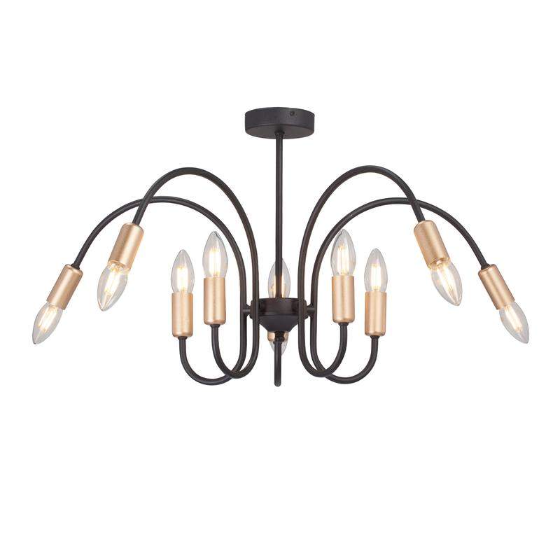 Люстра потолочная Vitaluce V3026-1/10PL на десять ламп под цоколь Е14 в стиле лофт. Может украсить вашу гостиную, столовую или спальню. Цвет арматуры - черненая бронза. Возможна установка светодиодных, энергосберегающих, филаментных или ламп накаливания. Площадь освещения при использовании ламп накаливания, максимальной мощностью 60 Вт, составляет 30 м2. При использовании светодиодной лампы мощностью до 8 Вт площадь освещения может быть увеличена до 35 м2. Лампы в комплект не входят. Параметры изделия: высота - 38,5 см, диаметр - 73 см. Размер потолочной чаши: диаметр - 9,8 см, высота - 2,5 см. Тип крепления - планка. Не рекомендовано для ванных комнат, подходит для установки на натяжной потолок. Прилагается инструкция по сборке и установке.