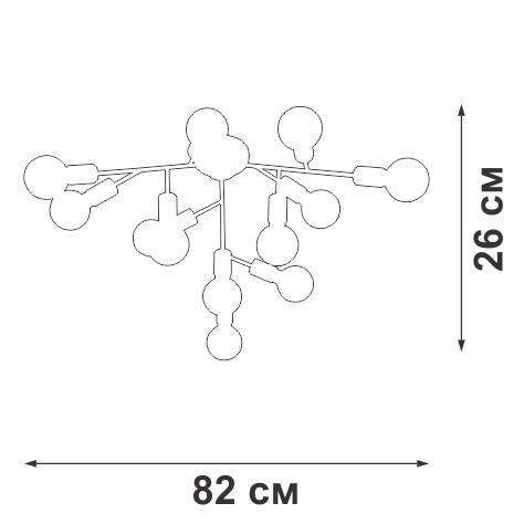 Люстра V4959-1/12PL VITALUCE на 12 ламп по 15 Вт привлекательного и вместе с тем грубоватого стиля лофт прекрасно впишется в помещение с любым другим стилевым наполнением. Цвет арматуры - черный, тип крепления - планка.