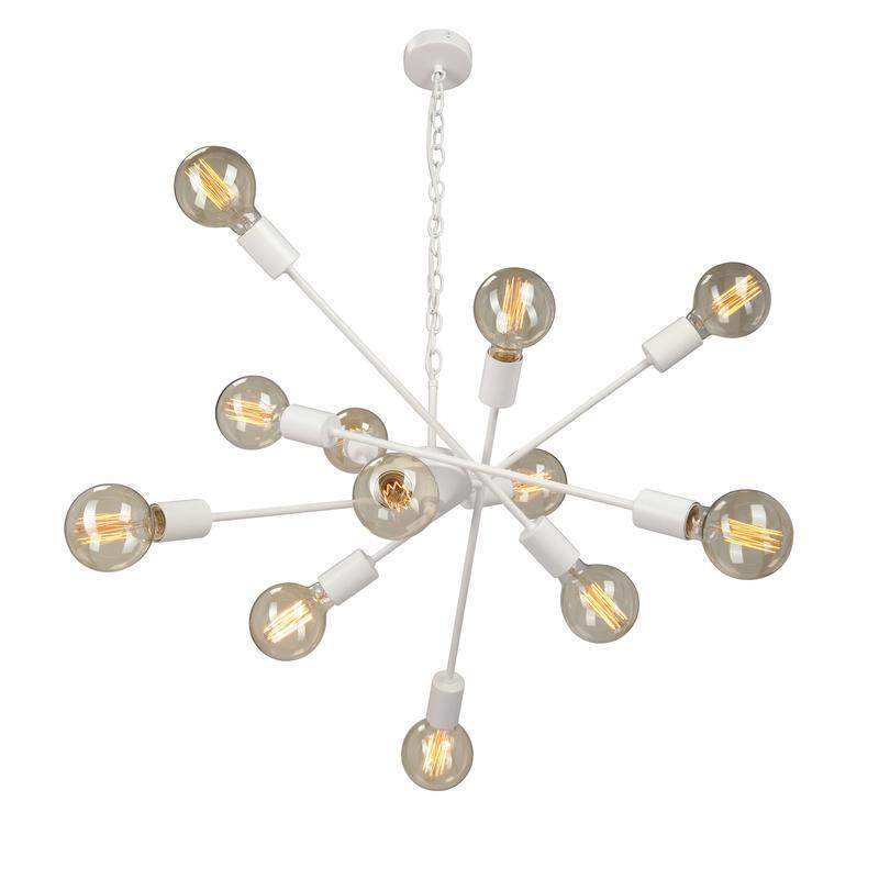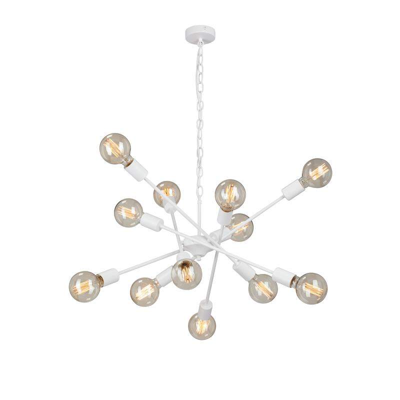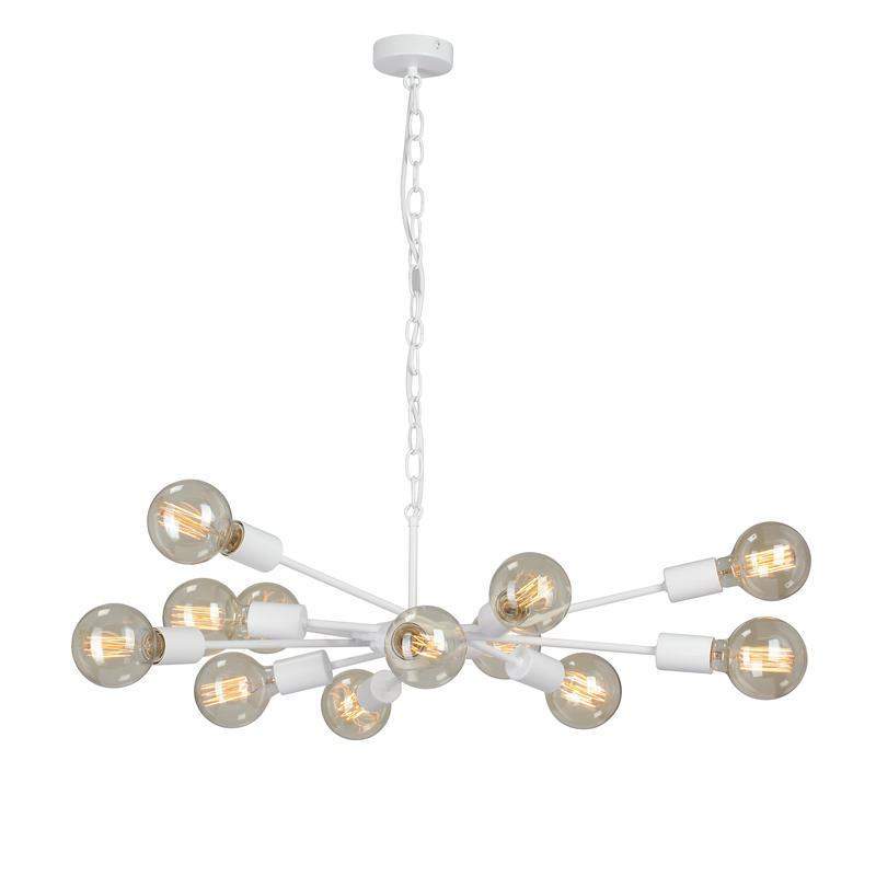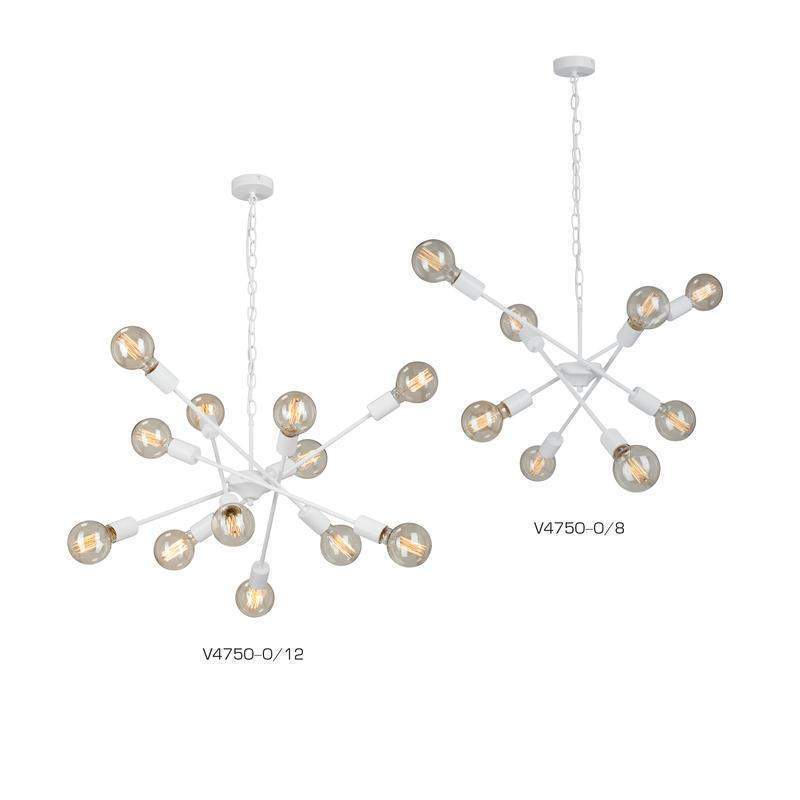 Люстра подвесная Vitaluce V4750-0/12 на двенадцать ламп под цоколь Е27 в стиле лофт будет прекрасным дополнением для любого интерьера. Люстра на потолок может украсить не только вашу гостиную, столовую или спальню, он также идеально впишется в лофт пространства, кафе, рестораны и другие общественный места. Подвесная/потолочная люстра изготовлена из металлического каркаса. Цвет арматуры - белый матовый. Возможна установка светодиодных, энергосберегающих, филаментных или ламп накаливания. Площадь освещения при использовании ламп накаливания составляет 36 м2. При использовании светодиодной лампы мощностью до 8 Вт площадь освещения может быть увеличена до 60 м2. Люстра имеет возможность крепления на планку, что делает ее универсальной для монтажа к любым видам потолков. Обращаем ваше внимание, лампы в комплект не входят. Параметры изделия: высота - 96 см, длина - 74 см. Размеры потолочной чаши: высота - 2,5 см, диаметр - 9,8 см. Длина изделия регулируется. Прилагается инструкция по сборке и установке.