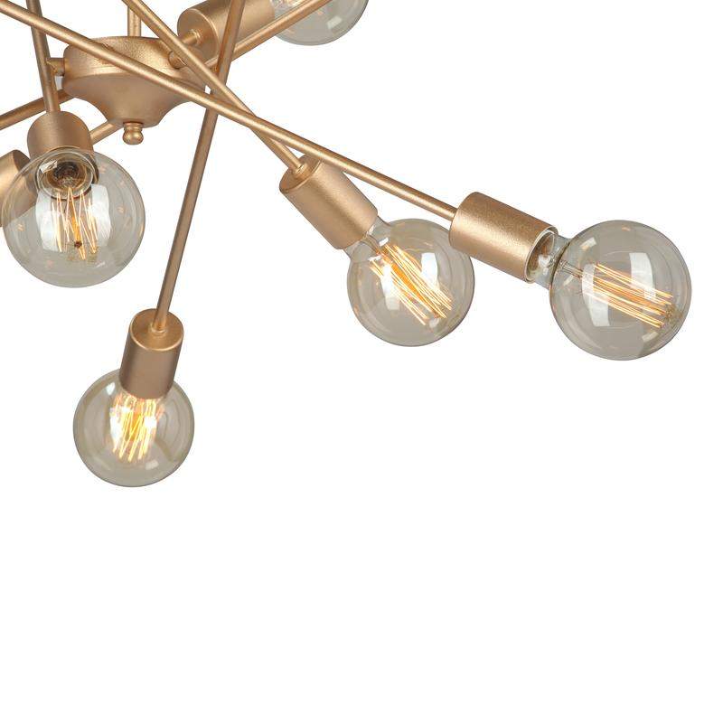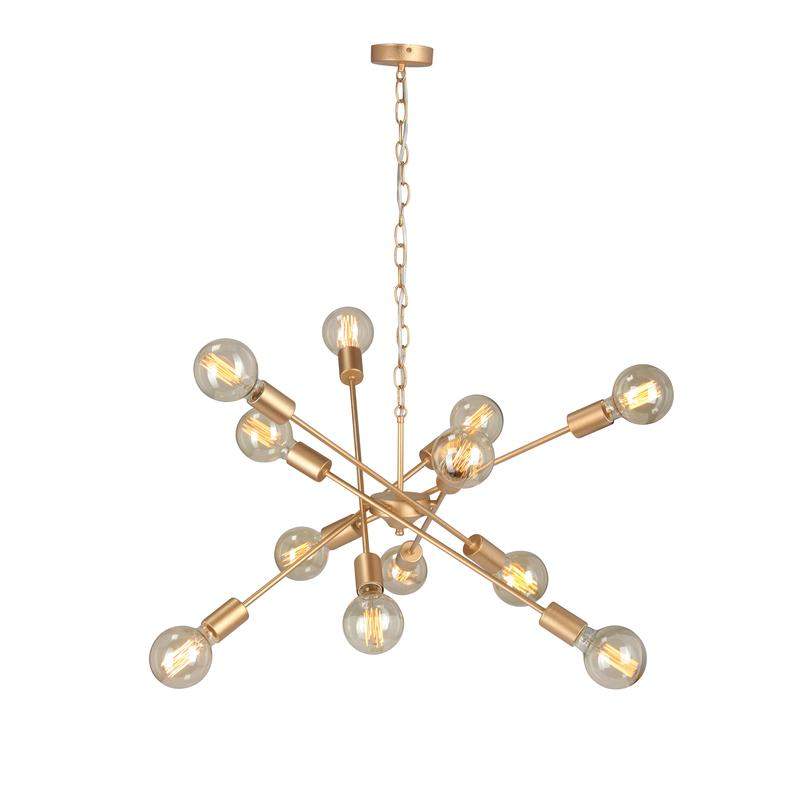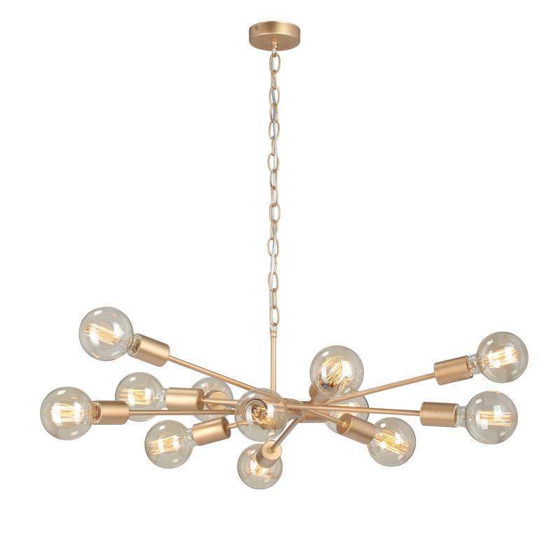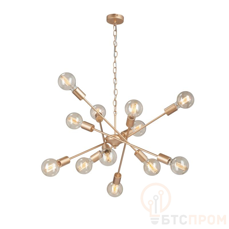 Люстра подвесная Vitaluce V4750-8/12 на двенадцать ламп под цоколь Е27 в стиле лофт будет прекрасным дополнением для любого интерьера. Люстра на потолок может украсить не только вашу гостиную, столовую или спальню, он также идеально впишется в лофт пространства, кафе, рестораны и другие общественный места. Подвесная люстра изготовлена из металлического каркаса. Цвет арматуры - золотистый. Возможна установка светодиодных, энергосберегающих, филаментных или ламп накаливания. Площадь освещения при использовании ламп накаливания составляет 36 м2. При использовании светодиодной лампы мощностью до 8 Вт площадь освещения может быть увеличена до 60 м2. Люстра имеет возможность крепления на планку, что делает ее универсальной для монтажа к любым видам потолков. Обращаем ваше внимание, лампы в комплект не входят. Параметры изделия: высота - 96 см, длина - 74 см. Размеры потолочной чаши: высота - 2,5 см, диаметр - 9,8 см. Длина изделия регулируется. Прилагается инструкция по сборке и установке.
