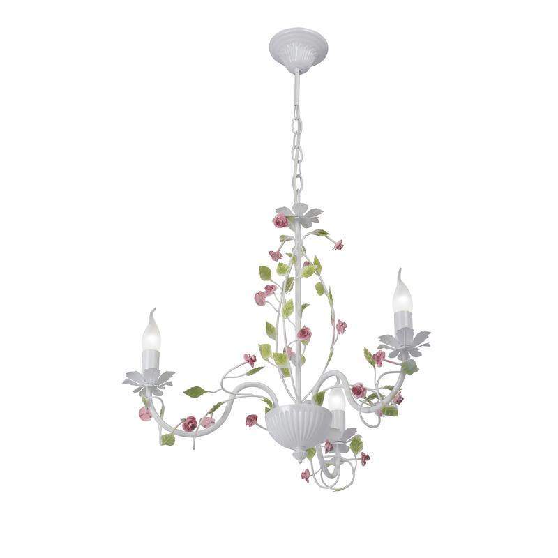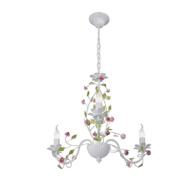 Люстра Vitaluce V1796-0/3 на три лампы под цоколь Е14 в стиле флористика. Цвет арматуры - белый. Возможна установка энергосберегающих, филаментных, накаливания и светодиодных ламп. Площадь освещения с лампой накаливания составляет 9 кв.м. При светодиодной лампе мощностью 8Вт площадь освещения составит 14-15 кв.м. Размеры изделия: высота - 89 см, диаметр - 54 см. Тип крепления - крюк. Прилагается инструкция по сборке и установке.