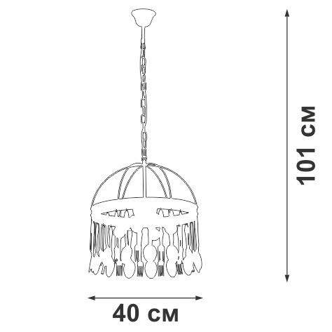 Люстра потолочная Vitaluce V4541-8/4 на четыре лампы под цоколь Е14 в стиле рустика, Может украсить вашу гостиную, столовую или спальню. Цвет арматуры - чёрный. Возможна установка светодиодных, энергосберегающих, филаментных или ламп накаливания. Площадь освещения при использовании ламп накаливания, максимальной мощностью 60 Вт, составляет 12 м2. При использовании светодиодной лампы мощностью до 8 Вт площадь освещения может быть увеличена до 18 м2. Лампы в комплект не входят. Параметры изделия: высота - 99 см, диаметр - 40 см. Размер потолочной чаши: диаметр - 9,3 см, высота - 6 см. Тип крепления - крюк. Не рекомендовано для ванных комнат, подходит для установки на натяжной потолок. Прилагается инструкция по сборке и установке.