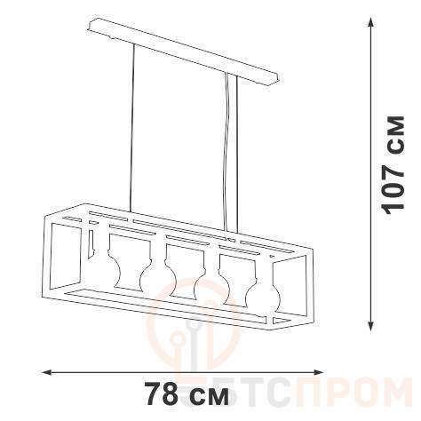 Люстра Vitaluce V3990-1/4PL на шесть ламп под цоколь Е27 в оригинальном и современном стиле лофт, может украсить вашу спальню, кухню или детскую. Цвет арматуры - чёрный матовый. Возможна установка светодиодных, энергосберегающих, филаментных или ламп накаливания. Площадь освещения при использовании ламп накаливания составляет 12 м2. При использовании светодиодной лампы мощностью до 8 Вт площадь освещения может быть увеличена до 20 м2. Лампы в комплект не входят. Параметры изделий: высота - 107 см, длина -78 см, ширина - 18 см. Тип крепления - планка. Не рекомендовано для ванных комнат, подходит для установки на натяжной потолок. Прилагается инструкция по сборке и установке.
