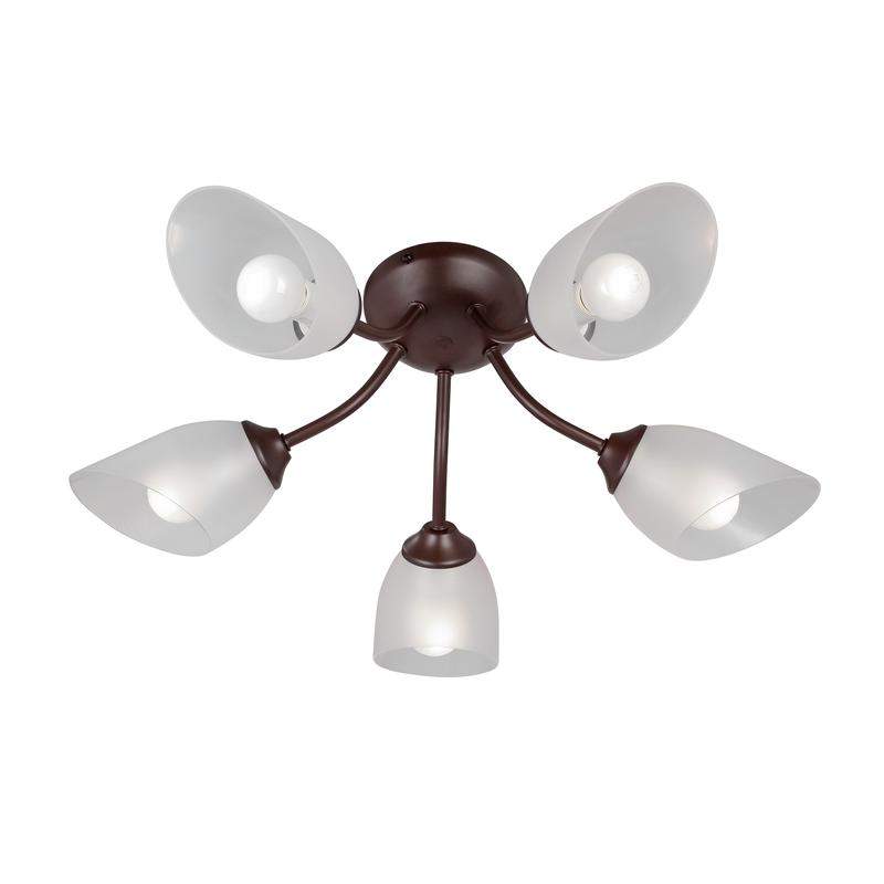 Люстра Vitаluce V3404/5PL на пять ламп под цоколь Е14 в стиле модерн, может украсить вашу гостиную, кухню, кабинет или коридор. Цвет арматуры - коричневый. Возможна установка светодиодных, энергосберегающих, филаментных или ламп накаливания. Площадь освещения при использовании ламп накаливания составляет 15 м2. При использовании светодиодной лампы мощностью до 8 Вт площадь освещения может быть увеличена до 18 м2. Лампы в комплект не входят. Параметры изделия: высота - 25 см, диаметр - 55 см. Тип крепления - планка. Прилагается инструкция по сборке и установке.