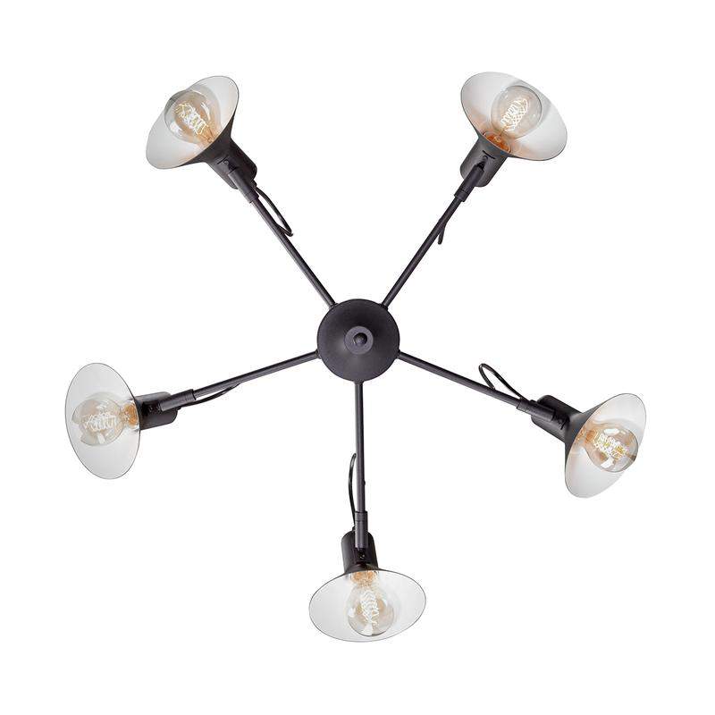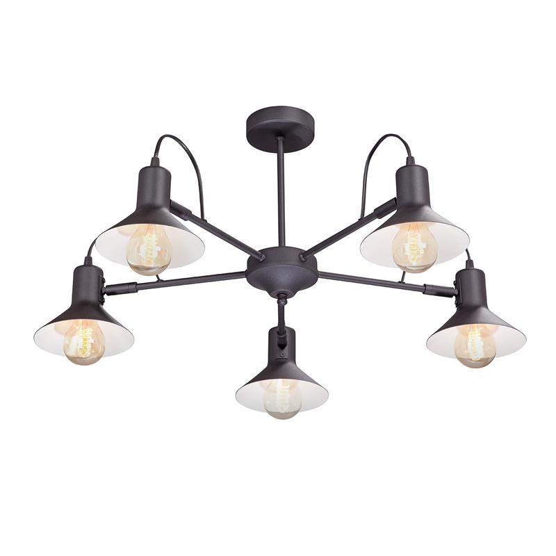 Люстра Vitaluce V4874-1/5PL на пять ламп под цоколь Е27, в стиле ар-деко. Может украсить вашу гостиную, столовую или спальню. Цвет арматуры - черный. Возможна установка светодиодных, энергосберегающих, филаментных или ламп накаливания. Площадь освещения при использовании ламп накаливания составляет 15 м2. При использовании светодиодной лампы мощностью до 8 Вт площадь освещения может быть увеличена до 18 м2. Лампы в комплект не входят. Параметры изделия: высота - 30 см, диаметр - 74 см. Размер потолочной чаши: диаметр - 9,8 см, высота - 2,5 см. Тип крепления - планка. Не рекомендовано для ванных комнат, подходит для установки на натяжной потолок. Прилагается инструкция по сборке и установке.