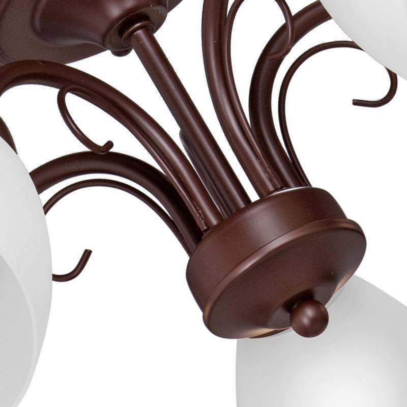 Практичная люстра V3499/5PL VITALUCE на 5 ламп под цоколь E14 - отличный выбор для вашей гостиной, столовой или спальни. Цвет арматуры - коричневый матовый. Возможна установка светодиодных, энергосберегающих, филаментных или ламп накаливания. Площадь освещения при использовании ламп накаливания, максимальной мощностью 40 Вт, составляет 10 м2. При использовании светодиодной лампы мощностью до 8 Вт площадь освещения может быть увеличена до 16 м2. Лампы в комплект не входят. Размер потолочной чаши: диаметр - 14 см, высота - 4,5 см. Тип крепления - планка. Плафоны из пластика, высота - 11,5 см, диаметр - 11,7 см. Не рекомендовано для ванных комнат, подходит для установки на натяжной потолок. Прилагается инструкция по сборке и установке.