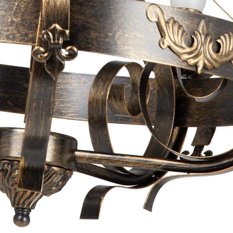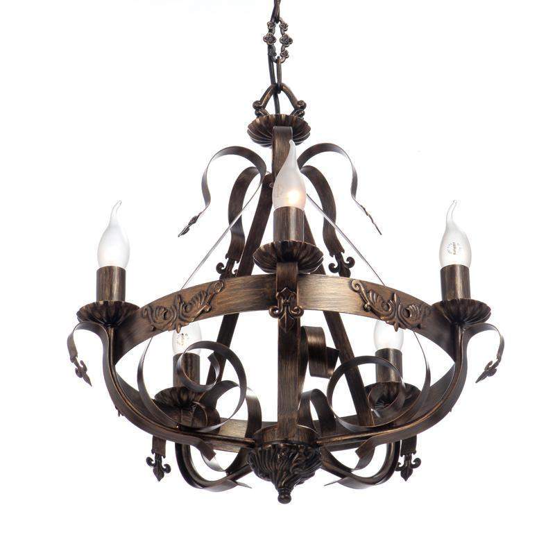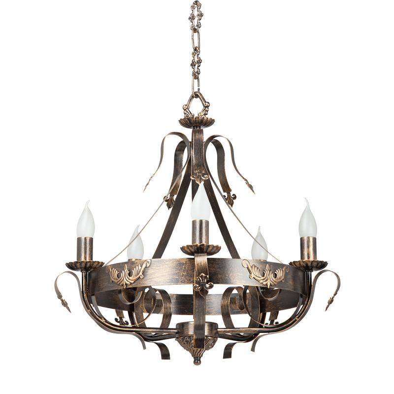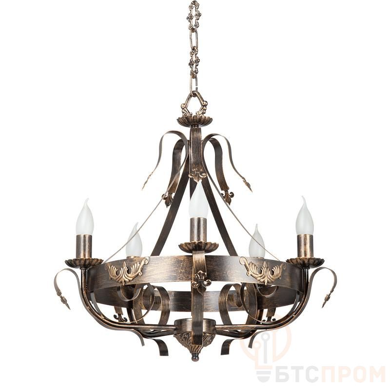 Люстра V1350/5 VITALUCE на 5 ламп по 40 Вт представляет собой светильник строгого стиля рустика. Может украсить Вашу гостиную, столовую или любое помещение Вашей дачи. Цвет арматуры - черненое золото. Лампы в комплект не входят.При использовании светодиодной лампы мощностью до 8 Вт площадь освещения до 18 м2
