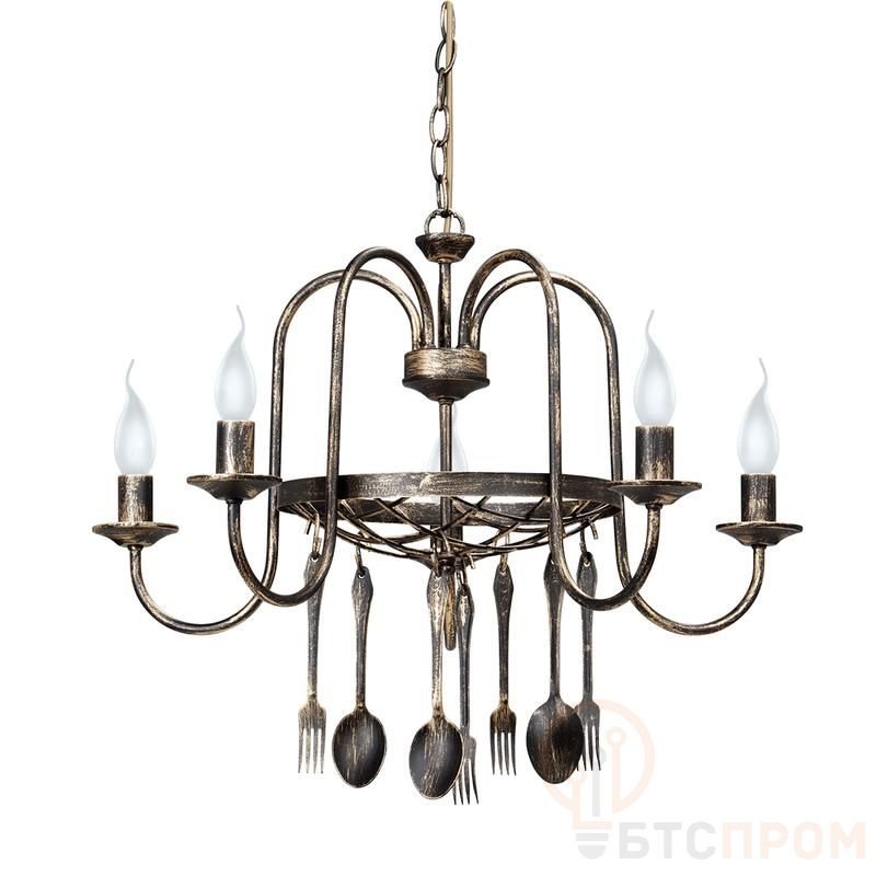 Люстра V1372/5 VITALUCE на 5 ламп по 40 Вт привлекательного и вместе с тем грубоватого стиля рустика прекрасно впишется в помещение с любым другим стилевым наполнением. Цвет арматуры - черный с золотом, тип крепления - крюк. Лампы в комплект не входят.