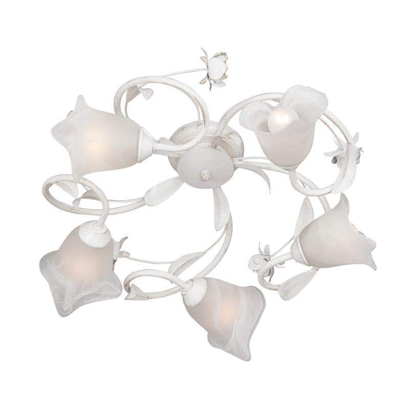 Люстра V1538-0/5PL VITALUCE для любителей утонченного интерьера, выполнена в стиле флористика. Предназначенa для 5 ламп по 40 Вт, цвет арматуры - бело-бежевый. Лампы в комплект не входят.При использовании светодиодной лампы мощностью до 8 Вт площадь освещения до 18 м2
