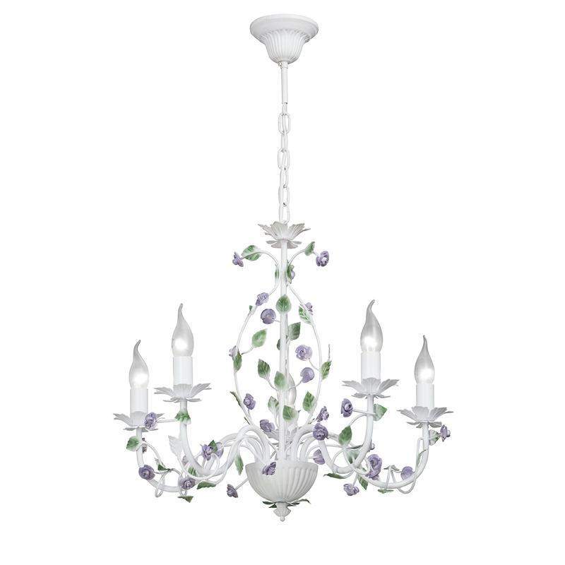 Люстра V1794-0/5 VITALUCE для любителей утонченного интерьера, выполнена в стиле флористика. Рассчитана на 5 ламп по 40 Вт, цвет арматуры - белый, тип крепления - крюк. Лампы в комплект не входят. При использовании светодиодной лампы мощностью до 8 Вт площадь освещения до 15 м2