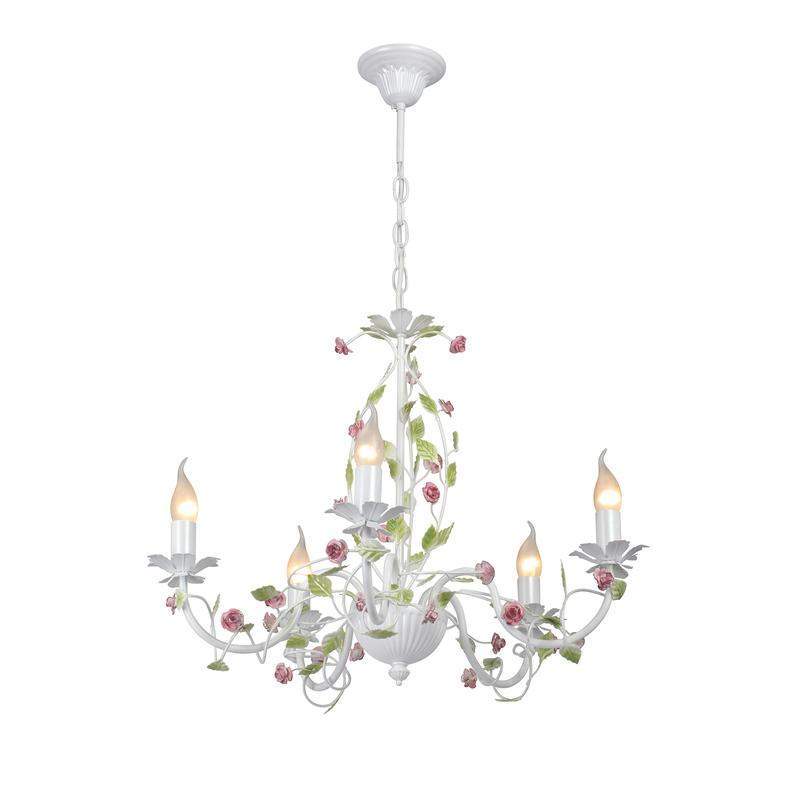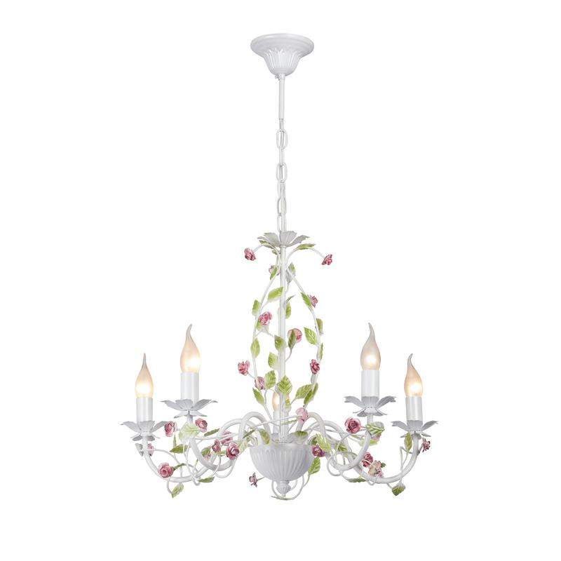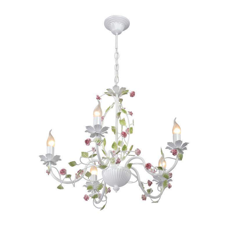 Люстра Vitaluce V1796-0/5 на пять ламп под цоколь Е14 в стиле флористика, может осветить вашу гостиную, кухню, спальню или холл. Цвет арматуры - белый. Возможна установка светодиодных, энергосберегающих, филаментных или ламп накаливания. Площадь освещения при использовании ламп накаливания составляет 15 м2. При использовании светодиодной лампы мощностью до 8 Вт площадь освещения может быть увеличена до 25 м2. Лампы в комплект не входят. Параметры изделий: высота - 85 см, диаметр- 60 см. Размеры потолочной чаши: высота - 6 см, диаметр - 12 см. Тип крепления - крюк. Не рекомендовано для ванных комнат, подходит для установки на натяжной потолок. Прилагается инструкция по сборке и установке.