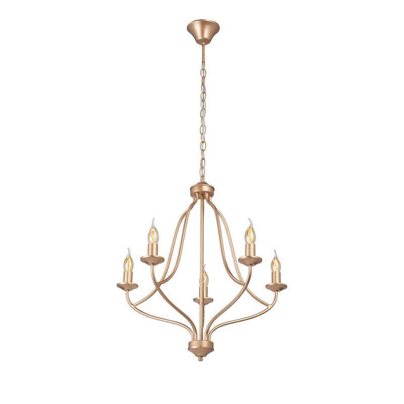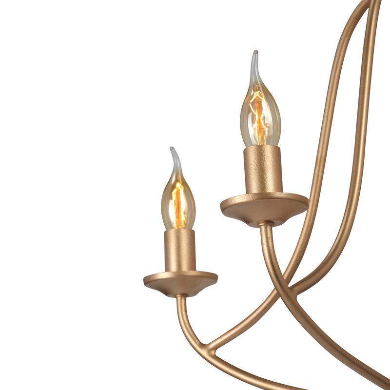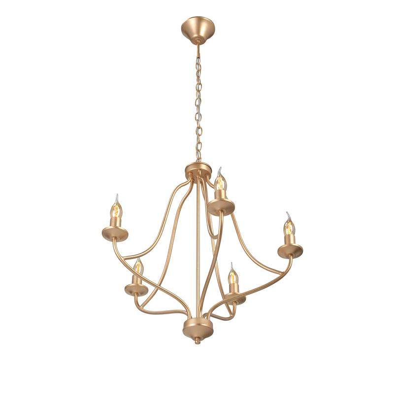 Люстра Vitaluce V1862-8/5, под цоколь Е14, в стиле модерн, станет отличным выбором для освещения вашей комнаты. Может украсить ваш коридор, спальню или столовую. Цвет арматуры – золотистый. Возможна установка энергосберегающих, светодиодных, филаментных или ламп накаливания. При использовании светодиодной лампы мощностью 8 Вт площадь освещения достигает 20 кв.м. Площадь освещения с лампой накаливания составит 15 кв.м. Лампы в комплект не входят. Параметры изделия: высота изделия - 124 см, диаметр - 60 см. Размеры потолочной чаши: диаметр - 8 см, высота - 2.5 см. Прилагается инструкция по сборке и установке.