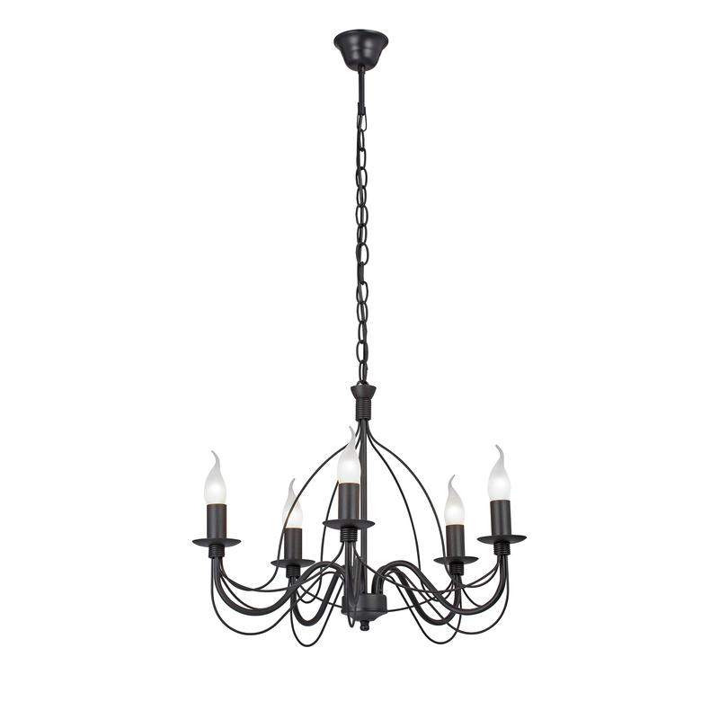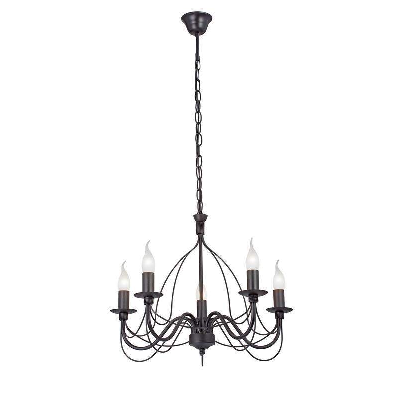 Люстра Vitaluce V1867-1/5, под цоколь Е14, в стиле модерн, станет отличным выбором для освещения вашей комнаты. Может украсить ваш коридор, спальню или столовую. Цвет арматуры – чёрный. Возможна установка энергосберегающих, светодиодных, филаментных или ламп накаливания. При использовании светодиодной лампы мощностью 8 Вт площадь освещения достигает 20 кв.м. Площадь освещения с лампой накаливания составит 15 кв.м. Лампы в комплект не входят. Параметры изделия: высота изделия - 99.5 см, диаметр- 50 см. Размеры потолочной чаши: диаметр - 9.3 см, высота - 6 см. Прилагается инструкция по сборке и установке.