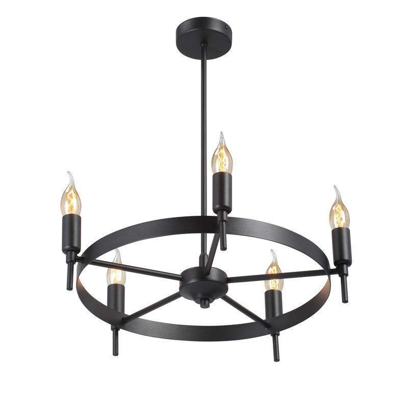 Люстра Vitaluce V3001-1/5PL на пять ламп под цоколь Е14 в стиле лофт, может украсить вашу гостиную, детскую, кухню или спальню. Цвет арматуры - чёрный. Возможна установка светодиодных, энергосберегающих, филаментных или ламп накаливания. Площадь освещения при использовании ламп накаливания составляет 15 м2. При использовании светодиодной лампы мощностью до 8 Вт площадь освещения может быть увеличена до 18 м2. Лампы в комплект не входят. Параметры изделий: высота - 55 см, диаметр - 45 см. Размеры потолочной чаши: высота - 2,5 см, диаметр - 9,8 см. Тип крепления - планка. Не рекомендовано для ванных комнат, подходит для установки на натяжной потолок. Прилагается инструкция по сборке и установке.